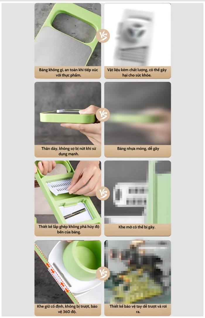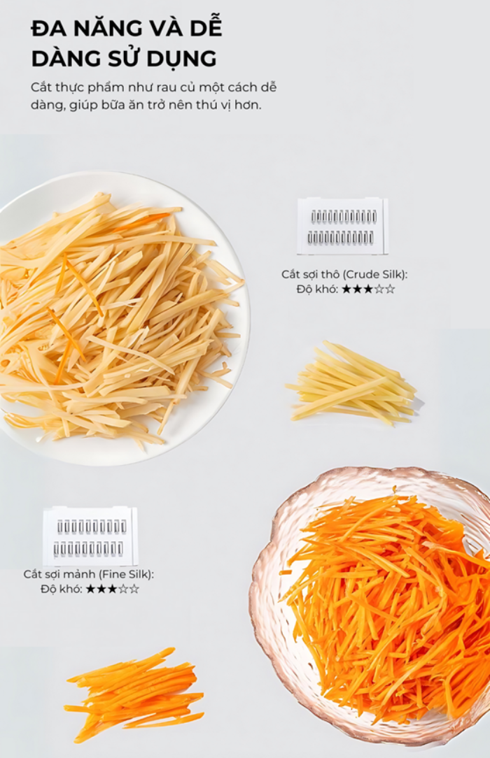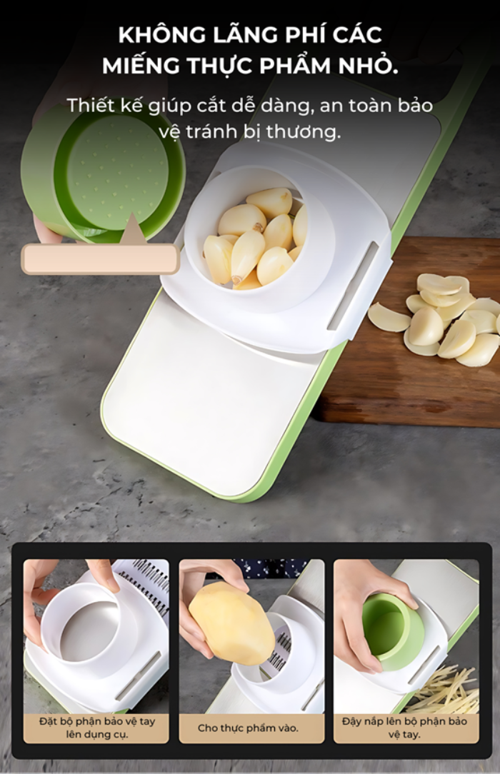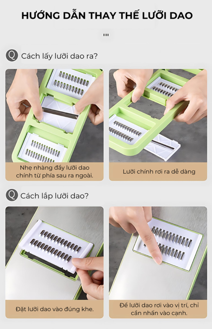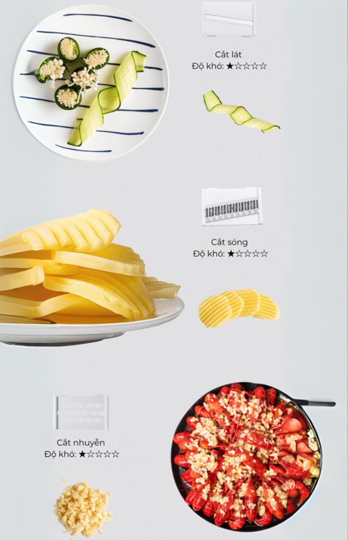 Chức năng: Dụng cụ cắt lát đa năng, có thể thái hạt lựu và thái lát